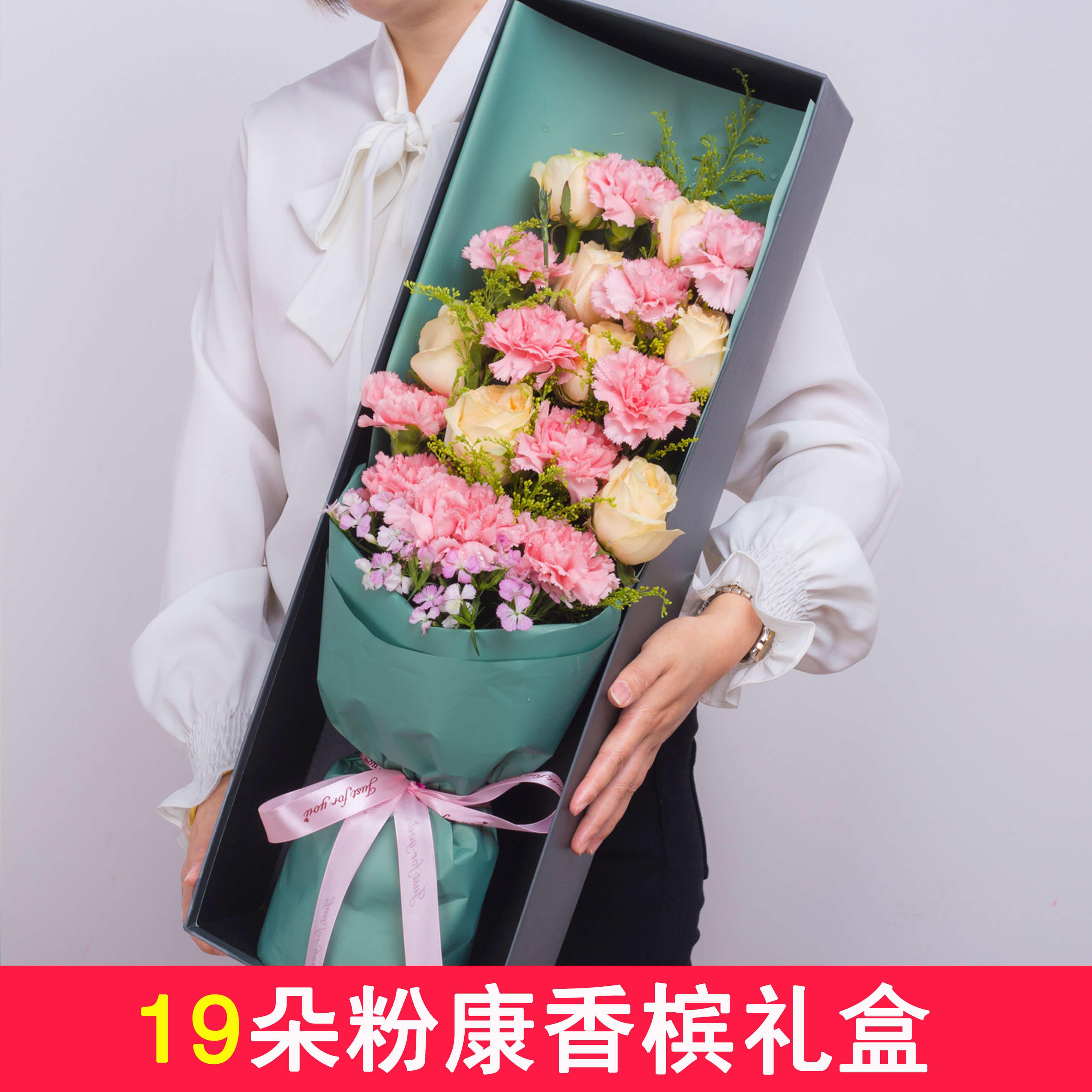 19朵粉色康乃馨香槟玫瑰礼盒