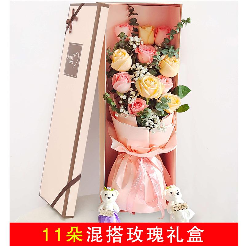 11朵混搭玫瑰礼盒花