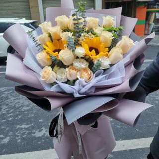 19朵香槟玫瑰搭配2朵向日葵花束 19朵香槟玫瑰搭配2朵向日葵花束,尤加利点缀 由于鲜花都是鲜活的植物,属于一次性... 288 元/束 花皇鲜花 已售1 好评100% 最快上门 0.5小时