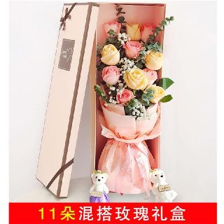 11朵混搭玫瑰礼盒花 11朵混搭(粉色玫瑰,香槟玫瑰)玫瑰鲜花礼盒花,尤加利满天星点缀 由于鲜花都是鲜... 169 元/束 花皇鲜花 已售1 好评100% 最快上门 0.5小时
